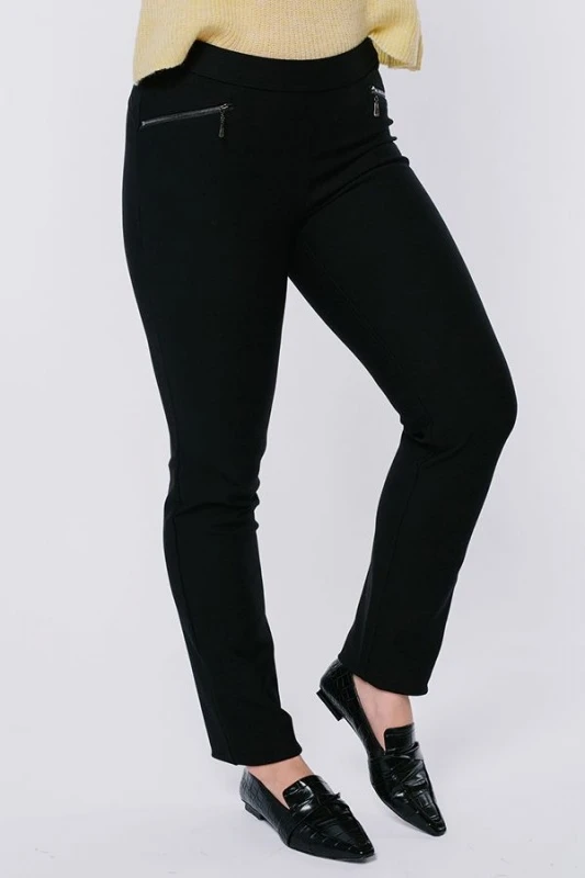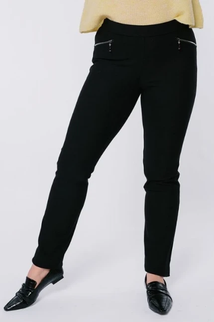 Брюки в молодежном стиле из трикотажного полотна. Модель без застежки на трикотажном поясе (в поясе резина 3,0 см), спереди имитация прорезных карманов на молнии, сзади кокетка. Уход за изделием: стирка при t=30. *Числовые параметры соответствуют размеру 44 Длина по внутреннему шву - 85 см. Ширина по линии низа - 16,5 см. Размер модели на фото: 48. Параметры модели: 90-68-102. Рост модели на фото: 175 см. Состав ткани: Нейлон 62% / Вискоза 35% / Спандекс 3% Сезон: Весна - Осень Пол: женский Посадка: Высокая Силуэт: Зауженные книзу Длина: Полная Дизайн ткани: Однотонные Цвет: Черный
