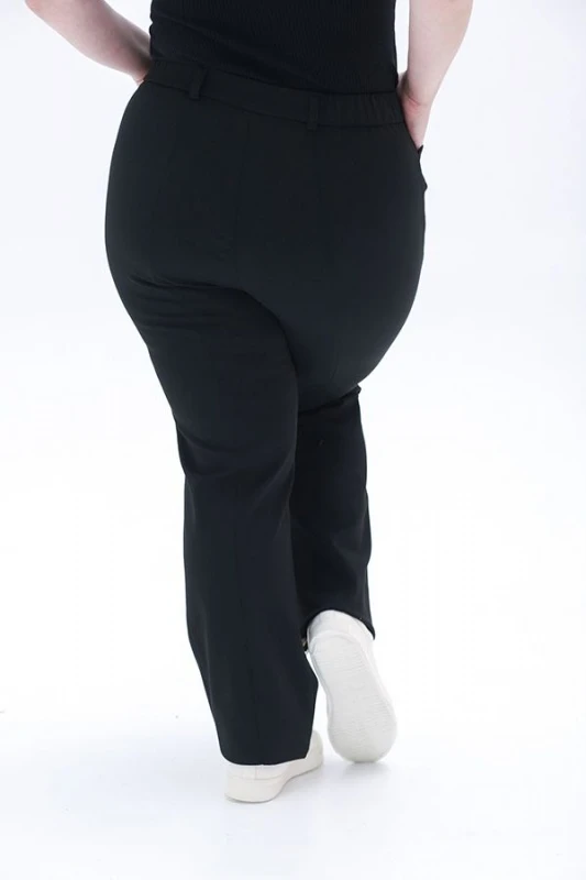 Классические брюки из плотной ткани. Детали: спереди застежка на молниют пуговицу, боковые карманы, на поясе шлевки, в поясе по бокам резина. По задней половинке брюк вертикальные резы. Практичная модель брюк для офисных сотрудников. Длина по внутреннему шву- 83 см. Ширина низа-21,5 см. Числовые параметры соответствуют размеру 52. Размер модели на фото 52. Параметры модели: 106-92-121. Рост модели на фото : 167 см. Состав ткани: Полиэстер 75%, Вискоза 22%, Лайкра 3% Сезон: Весна - Осень Пол: Женский Посадка: Высокая Силуэт: Прямой от колена (сигареты) Силуэт: Прямой от колена Длина: Полная Дизайн ткани: Однотонный Цвет: Черный