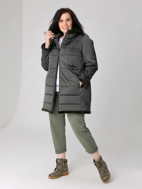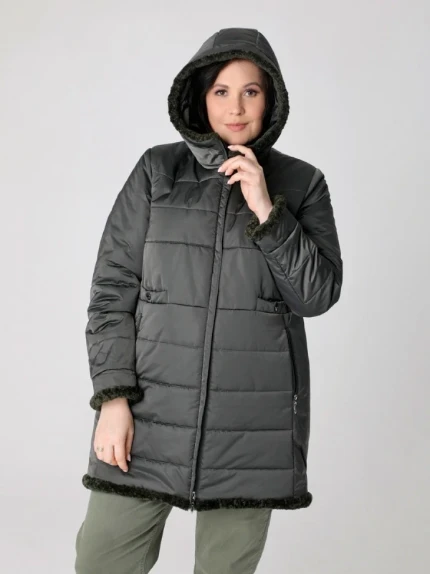 Демисезонная куртка прямого силуэта с застежкой на двухзамковую молнию подойдет для женщин и девушек любого возраста. Воротник - стойка, переходящая в капюшон. Две пары карманов, удобно расположенные в рельефных швах, застегиваются на молнию и кнопки. Есть внутренний кармашек на молнии. Внутренняя отделка стойки, низ втачного рукава и низ изделия оформлены мягким искусственным мехом. Эта стильная удлиненная куртка-парка выручит Вас осенью, весной и ранней зимой. Плащевая ткань имеет водоотталкивающую пропитку, которая выдержит небольшой дождь, снег и ветер. Хорошо зарекомендовавший себя утеплитель Холлофайбер плотностью 200 гр/м защитит от холода. Подкладка в изделии - в мелкую полоску. Состав: 100% полиэстер Подкладка: 100% полиэстер Утеплитель: Холлофайбер 200 гр/м Сезон: Осень Производитель: Россия Температура комфорта от: -10 Температура комфорта до: +5