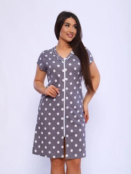 Халат на молнии, прямой силуэт, разрезы по боковым швам Состав: 100% хлопок Ткань: Кулирка