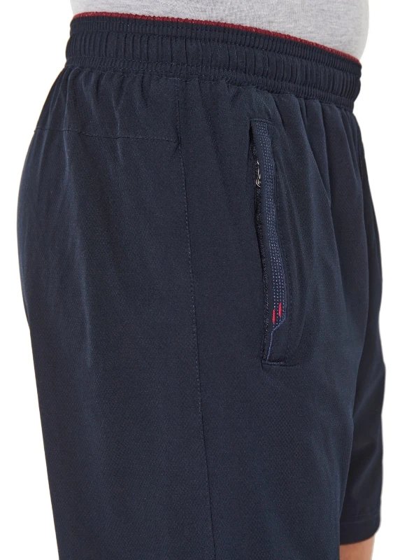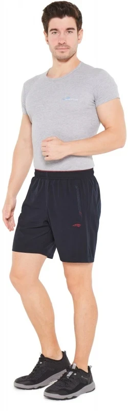 Материал: Жакард бистреч полиэстер 95%, эластан 5% Отделка: Pongee-принт полиэстер 100% Спортивные шорты с 2-х цветным поясом на резинке. Длина – выше колена. Для дополнительной фиксации с внутренней стороны в пояс вставлен шнурок. Отшиты из тонкого синтетического материала, содержащего жаккардовые нити и эластан. Нити эластана расположены как по утку, так и по основе ткани, что придаёт материалу чрезвычайную подвижность, формоустойчивость и комфорт в носке. Жаккардовые нити формируют слабовыраженный рельефный рисунок. Передние карманы на молниях под листочками, декорированными вышивками. Под левым карманом вышивка в фирменном стиле.