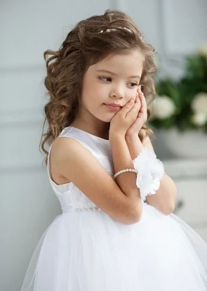 Состав: верх 100% полиэстер, подклад 100% хлопок Восхитительное нарядное платье для маленьких принцесс. Модель декорирована изумительным кружевом по лифу и юбке. По талии платье украшено жемчужной нитью и нежным воздушным цветком в цвет платья.