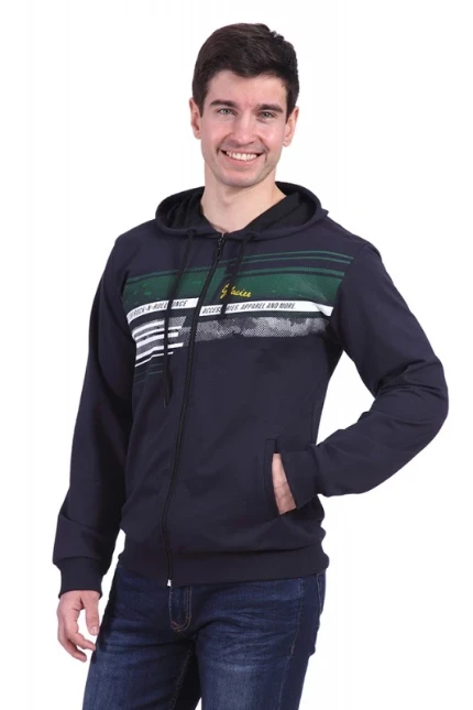 Капюшон регулируется шнурком, застежка молния по всей длине толстовки, косые карманы с листочками, низ и рукава на манжете из резинки, фронтальный принт. Ткань: футер петлевой 2-х нитка. Плотность: 250 г/м2. Состав: 65% хлопок/30% полиэстер/5% лайкра Маркировка/RUS размер: S/44-46; M/46-48; L/48-50; XL/50-52; 2XL/52-54