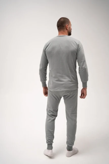Комплект мужского нательного термобелья. Хорошо облегает тело, отводит влагу, сохраняет температурный баланс тела в прохладную погоду, абсолютно незаметно под верхней одеждой. Подходит для повседневной носки и активного отдыха. Кальсоны с гульфиком, в пояс продета резина шириной 1см. Манжеты рукава, манжеты низа кальсон и обтачка горловины из полотна ластик 1:1. Вид полотна: футерованное с начесом (2-х нитка) Роста: 170-188 ГОСТ 31408-09