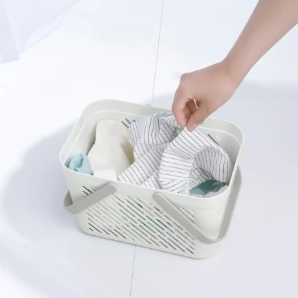 Складные ручки позволяют легко поднимать и переносить корзину с одного места на другое. Практично при посещении бассейна или пляжа. Содержимое остается сухим и благополучным, потому что корзина имеет отверстия по бокам и дренажные отверстия на дне. Корзина также идеально подходит для хранения стирального порошка рядом со стиральной машиной, бутылок под раковиной и мелких инструментов в гараже.