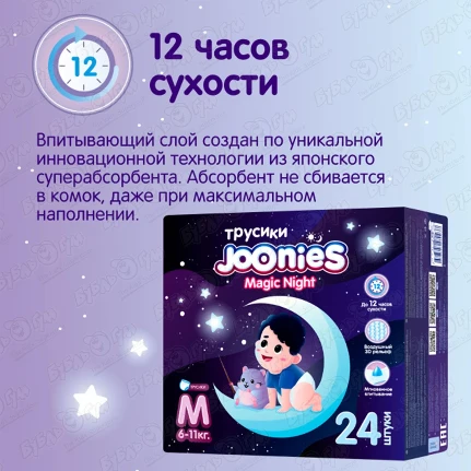 Подгузники-трусики Joonies Magic Night XXl 15-20кг 18шт