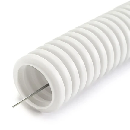 Фото для Труба гофрированная ПВХ 40, белая, с протяжкой. Промрукав