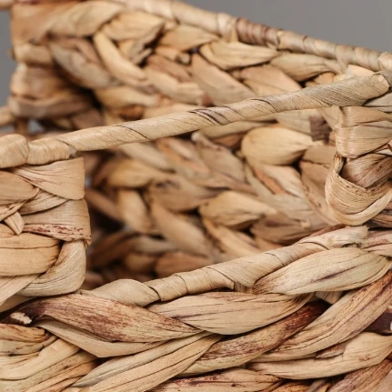 Корзина сделана из плотного материала на хлопковой основе. В конструкции отсутствует классический каркас из спиц. Округлую форму ёмкости поддерживает кольцо из проволоки.