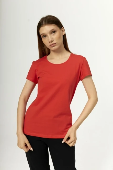 Особенности модели - круглый вырез горловины и короткий рукав. Вид полотна: кулирная гладь Состав полотна: Хлопок 95 %, Лайкра 5 % Рост: 164 ГОСТ 31409-09