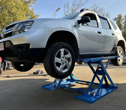 Передвижной. Сокращает время монтажа/демонтажа колес на 40-50%! Практически бесшумен. Постановка на стопора происходит в автоматическом режиме. Разблокировка стопорного механизма с помощью пневматического механизма на управляющей стойке подъемника. Оборудован концевым выключателем при достижении максимальной высоты. г/п 3,0 тонны. Высота подъема -1м. Длина платформ 1420 мм. Высота подхвата 105 мм. Гарантия до 3 лет. Итальянская гидравлика! Доставка по РФ, РБ и Казахстан. Для подъема внедорожников, микроавтобусов, Газелей и легковых автомобилей, в том числе и с низкой посадкой в условия шиномонтажной мастерской. Рекомендуется для установки в случае ограниченности габаритов помещения – после использования его можно откатить и освободить место. Данный подъемник для шиномонтажа практически бесшумен, потребляет вдвое меньше энергии при одинаковом времени на подъем в сравнении с электромеханическими аналогами. Особенности конструкции подъемника для шиномонтажа TS-1502: •    Сертифицирован для продажи в России и ЕС. • Стойка управления подъемником расположена отдельно. •    Данный шиномонтажный подъемник оснащен рукояткой и роликами для транспортировки подъемника по полу цеха. •    Постановка на стопора происходит в автоматическом режиме. •    Разблокировка стопорного механизма с помощью пневматического механизма на управляющей стойке подъемника. •    Эффективная многоуровневая система безопасности, удерживающая платформы подъемника в случае обрыва гидравлического шланга. •    Уплотнительные манжеты гидравлической системы ИТАЛЬЯНСКОГО производства, а не китайские, поэтому не текут сальники. •    Качественные штуцеры гидравлической системы. Высокая герметичность – не течет. •    Качественные клапаны гидравлического насоса. •    Высота подхвата – 105мм. •    Высокая чистота обработки внутренних поверхностей гидравлических цилиндров, приводит к увеличению срока службы подъемника для шиномонтажа. •    Клапаны гидравлической системы подъемника закрыты специальными транспортировочными заглушками, которые исключают попадание пыли и грязи в гидравлическую систему. •    Ножничный подъемник для шиномонтажа поставляется в жесткой упаковке, которая предотвращает деформацию при транспортировке. •    Ножничный подъемник для шиномонтажа производит подхват автомобиля за штатные места установки домкрата. •    Питание цепи управления ножничным подъемником – 24В. Безопасно для персонала. •    Ножничный шиномонтажный подъемник оборудован концевым выключателем. При достижении максимальной высоты насос выключится и подъем автоматически прекратится. •    Заездные трапы подъемника оборудованы фиксаторами для увеличения длины подъемной площадки с 1420 до 1940 мм. Эта функция дает возможность поднимать длиннобазные автомобили типа Мерседес Спринтер без продольной раскачки. •    Заездные трапы шиномонтажного подъемника с противоскользящей насечкой.   ВАЖНО! •    2 ГОДА гарантии* - гидравлические части, включая гидроцилиндры, уплотнительные манжеты, гидравлические шланги и насосы.