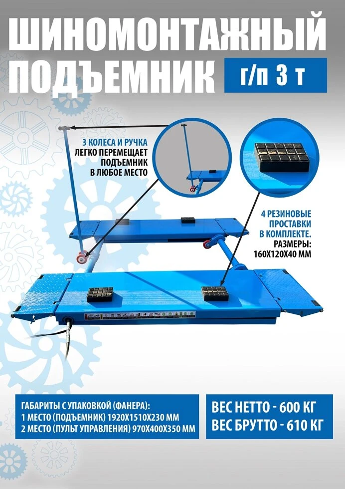 Подъемник шиномонтажный г/п 3,0 т (380 V)
