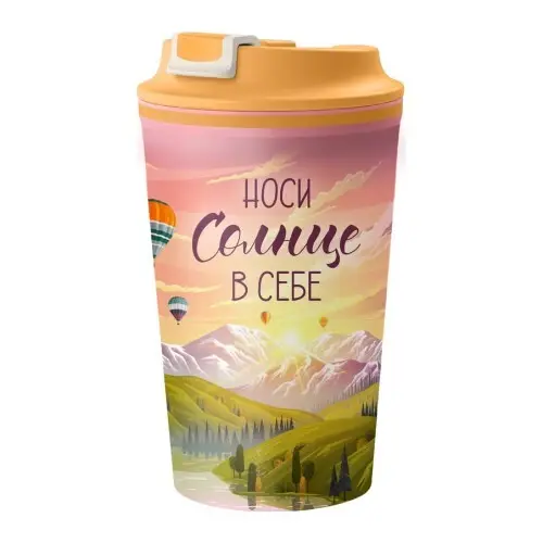 Термостакан с клапаном и декором Phibo Солнце 350 мл 32822