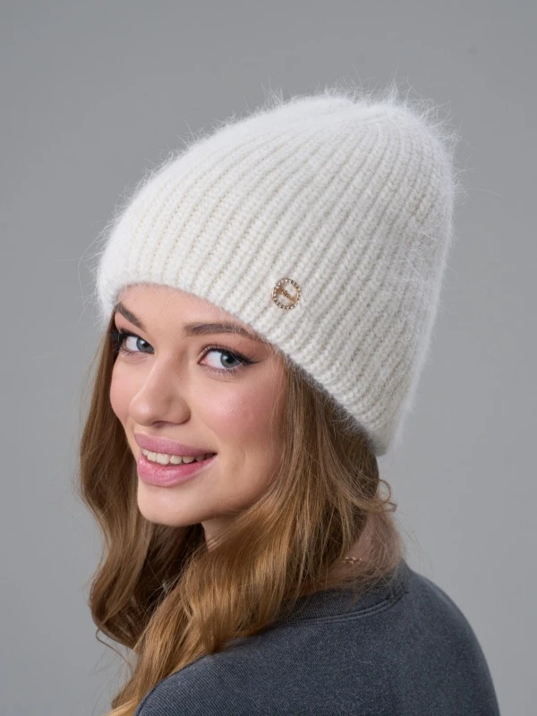 Модная шапка Энже. Связана из нежной пушистой ангоры в 2 слоя без отворота. В вязке присутствует декоративная пайеточная нить, мерцает в меру, и благородно. Декорирована фирменной, съемной фурнитурой. Выдерживает температуру: до -20 Все ангоровые изделия, проходят многоуровневые циклы на нашем производстве - это предварительная обработка пряжи, стирка и сушка, для максимально комфортной эксплуатации и износостойкости изделий. Кеттельный ювелирный шов и много других технических процессов, для самой комфортной носки наших изделий! Состав: 60% ангора, 40% полиамид Производство: Россия