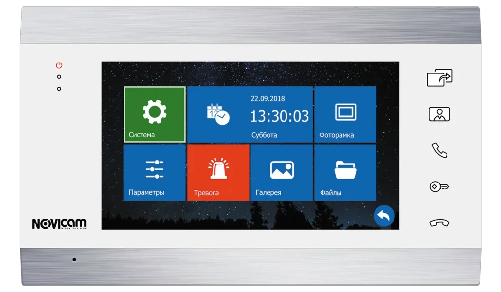 HD ЖК-дисплей 7” Подключение до 4 вызывных панелей, до 5 доп.мониторов, до 3 видеокамер Встроенное реле для управления воротами или замком Встроенный медиаплеер фото, аудио, видео Голосовая почта (автоответчик) Режимы фоторамки или часов Совместим с подъездным домофоном через модуль сопряжения c поддержкой сигнала HOOK Универсальное питание