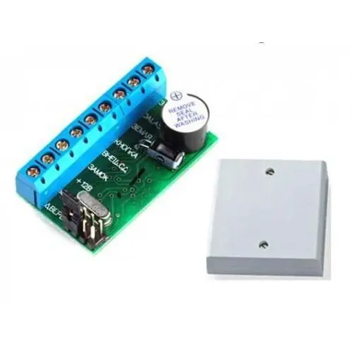 Напряжение питания: 8-18V DC Ток потребления: 20 mA Ток коммутации: 5А Количество ключей/карт (max): 1364 шт. Тип ключей:DS1990A, RFID карточки/брелки Встроенная энергонезависимая память (EEPROM) Выходы МДП транзистор: 1шт. Количество подключаемых считывателей: 1шт. Установка длительности открывания замка: от 0 до 220 cек. Световая/Звуковая индикация режимов работы: встроенный зуммер, светодиод Перемычка для выбора типа замка: электромагнитный, электромеханический Рабочая температура: от -40°С до +50°С Габаритные размеры (mm): 45х25х14