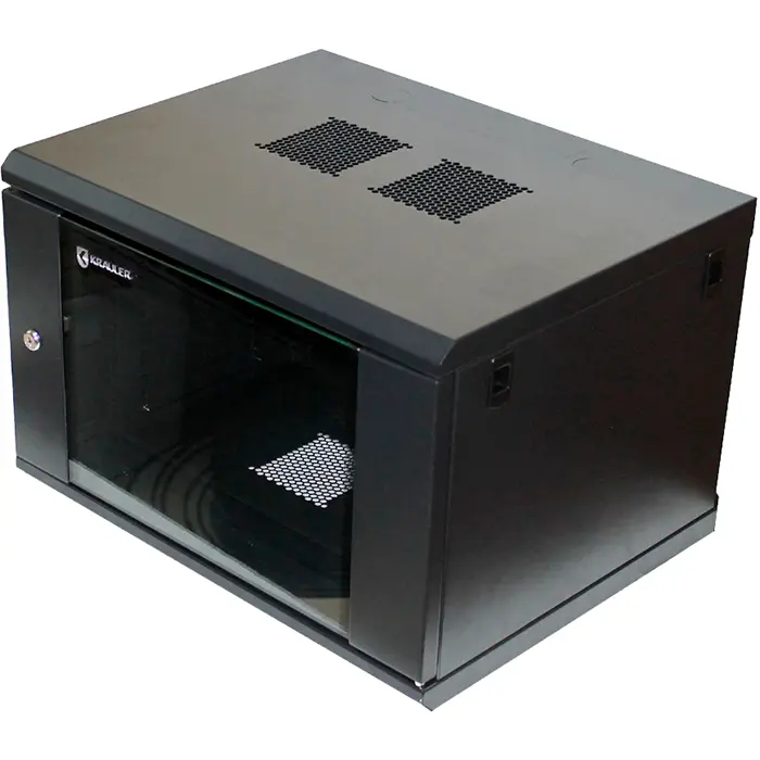 Шкаф настенный 2-х секционный KRAULER KRC86406 6U, 600*450*368мм, стеклянная дверь, черный