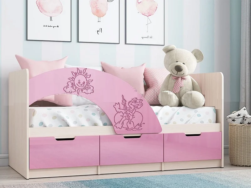 Фото для Юниор-3 (Мульт) Кровать 1600*800м (Розовый металлик, Дуб беленый) МИФ