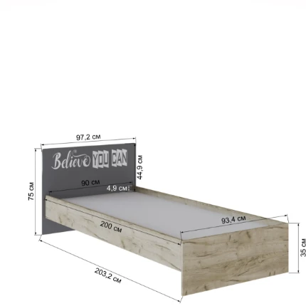 Кровать Колибри 0.9 (Дуб сонома/Ателье светлое)