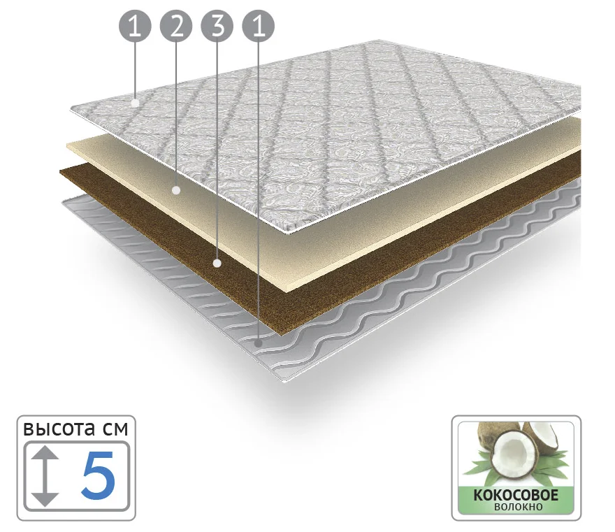 Зональный латекс создает эргонамический эффект, позволяет поддерживать позвоночник в правильном положении во время сна Состав кантовый чехол из жаккарда х/б латекс кокосовое волокно