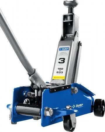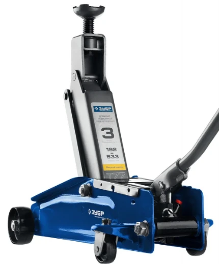 Фото для ЗУБР Т-77, 3 т, 192 - 533 мм, подкатной домкрат с высоким подъемом, Профессионал (43055-3)