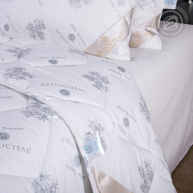 Одеяло "Бамбук" Торговая марка: АРТПОСТЕЛЬ Коллекция: Премиум Наполнитель: Термоскрепленное волокно бамбука Плотность: 300 гр./м.кв Чехол: Стеганый с окаймляющей лентой Ткань чехла: Тик пухоперовой (100% хлопок) Упаковка: Сумка ПВХ+спанбонд Описание: Благодаря своему растительному происхождению, волокно бамбука является экологически чистым продуктом с прекрасными вентилирующими свойствами. Наполнитель из волокна бамбука обладает мягкостью и пористой структурой, которая помогает бороться с потоотделением, регулирует влажность и выравнивает температуру, создавая охлаждающий эффект. Волокно бамбука антиаллергенно и обладает антибактериальными свойствами, естественным образом уничтожая более 70% бактерий, попадающих на него. Изделия с наполнителем из бамбукового волокна создают прекрасный микроклимат для Вашего сна. При изготовлении одеяла используется ткань тик с логотипом бренда «Артпостель».