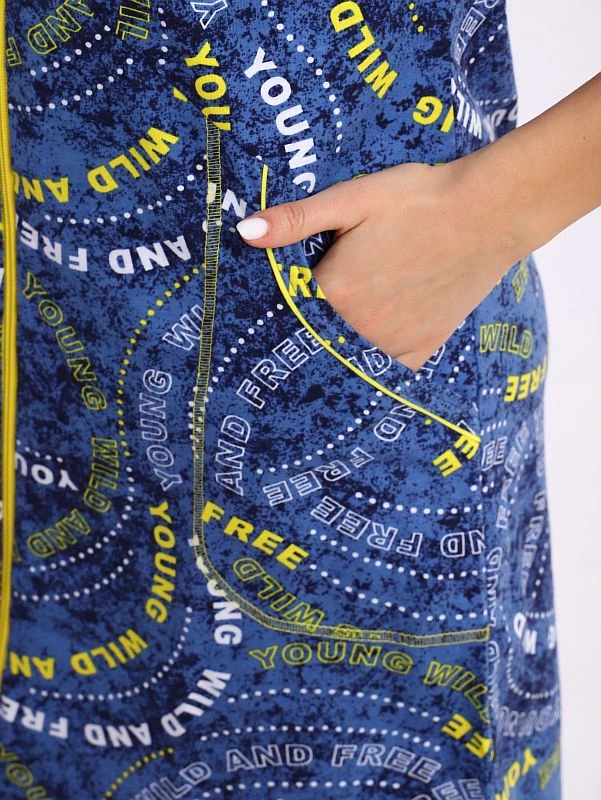 Состав: 100% хлопок Ткань: Кулирка Молодежный халатик на молнии. Хорошая посадки, позитивный принт РАЗМЕРЫ: 44-54
